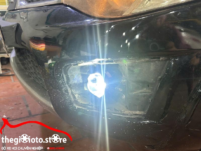 Tiến hành tháo đèn gầm nguyên bản , lắp bi gầm mới bằng gá chuyên dụng, không cắt chế dây điện